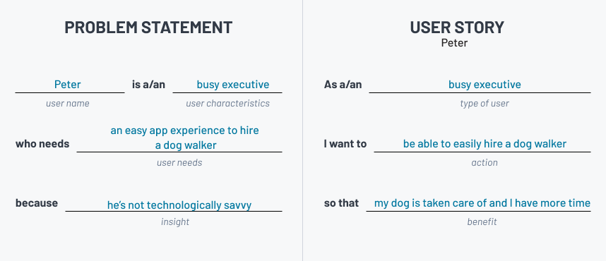 Problem statement and user story for a dog walking app